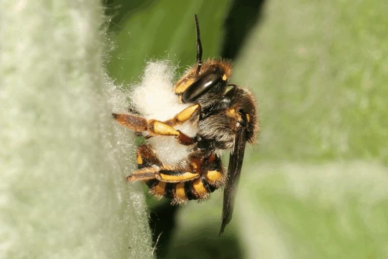 De wolbij is een fascinerende bouwer die zachtheid en precisie combineert. Met haar pluizige nesten en kalme karakter is ze een charmante en waardevolle gast in elke tuin.